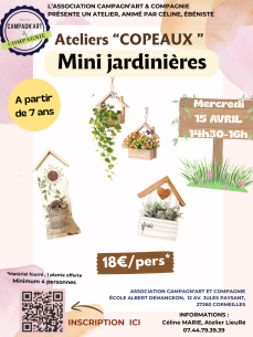 Séance Spéciale pendant les prochaines vacances scolaires pour les enfants à partir de 7 ans le mercredi 15 Avril de 14h30 à 16h00: Mini-jardinières avec Céline